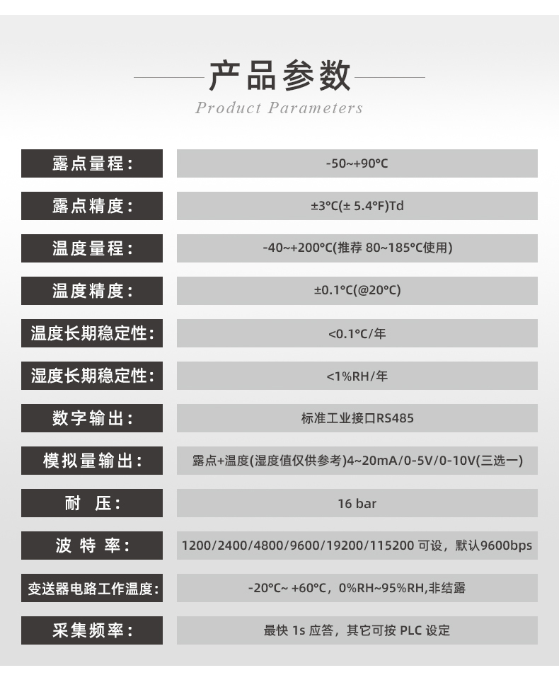 • 應(yīng)用領(lǐng)域: 空氣壓縮、鋰電池生產(chǎn)、半導(dǎo)體制造、電力工程設(shè)備、空分制氮、干燥氣、液化氣、高溫?zé)Y(jié)爐保護(hù)氣體、電子行業(yè)保護(hù)性氣體、絕緣氣、制冷劑、混合氣體微量水分、金屬冶煉、石油化工過程、天然氣處理等。
