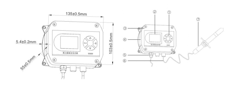 ●模擬量輸出:露點(diǎn)+溫度(濕度值僅供參考)4~20mA/0-5V/0-10V(三選一)