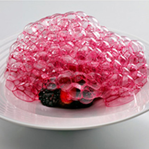 ? ? ? ? 所謂的分子食物是指把葡萄糖(C6H12O6)、維生素C(C6H8O6)、檸檬酸(C6H8O7)、麥芽糖醇(C12H24O11)等可食用的化學(xué)物質(zhì)進行組合或改變食材分子結(jié)構(gòu),再重新組合。也就是從分子的角度制造出無限多的食物,不再受地理條件、產(chǎn)量等因素的局限。比如把固體的食材變成液體甚至氣體食用,或使一種食材的味道和外表酷似另一種食材。如:用蔬菜制作的魚子醬、冰淇淋般的馬鈴薯、奶油與起司做的雞蛋、果凍制成生魚片壽司、泡沫狀糕點等。分子料理是全球最為奢侈的美食之一,頂級分子食物制作起來就如同做科學(xué)實驗一樣復(fù)雜,難度極高,因此價格也極高。復(fù)雜精細的制作過程,耗時耗力,美食精致量少更“吃不飽”。但是無可否認這種新的美食制作方式正在被人們所接受,很多主廚出了自己的分子料理書籍,教大家在家里如何做簡單而又高級的分子料理。分子料理看起來高大上,其實只有烹飪技法比較單一,主要是低溫慢煮、泡沫和慕斯、液氮、膠囊這四種做法。